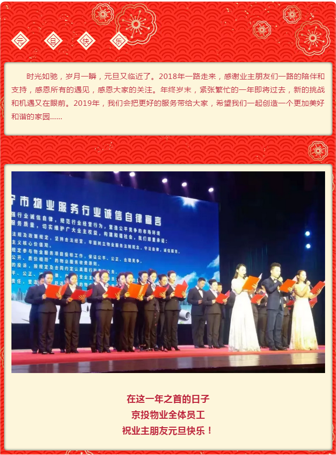 京投物业全体员工祝业主朋友元旦快乐!