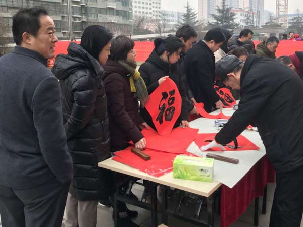山东京投物业邀请民建济宁企业支部"迎春送福"进入祥和花园给业主们送福啦